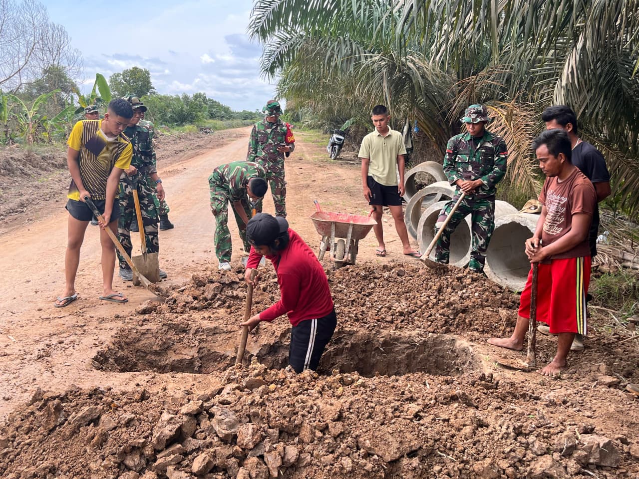 Banyuasin – Mayor Inf Saibudin selaku Kasdim 0430/BA, didampingi oleh Pasiter Dim 0430/BA Kapten Inf Panca Agung dan Pasiops Kapten Arm M. Riduan, melakukan peninjauan langsung terhadap kemajuan pelaksanaan Program TNI Manunggal Membangun Desa (TMMD) ke-127 yang diselenggarakan oleh Kodim 0430/BA.