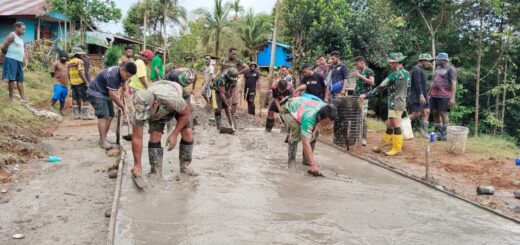 Kayu Cerucuk Berjajar Tertancap, Satgas TMMD Pacu Stabilisasi Tanah Jalan Desa Talio