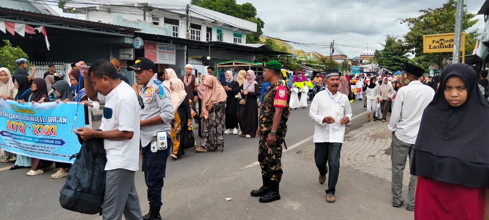 Dompu, NTB – Untuk memastikan kelancaran dan keamanan acara keagamaan, Sertu Faruk dari Babinsa Kelurahan Monta Baru melaksanakan pengamanan pawai Ta’aruf Musabaqah Tilawatil Qur’an (MTQ) pada Jumat, 13 Februari 2026. Kegiatan ini merupakan bagian dari pembukaan MTQ yang akan dilaksanakan pada malam harinya.