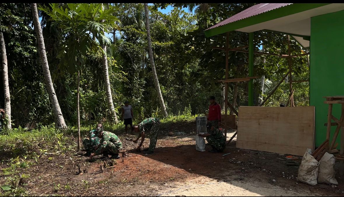 Kaimana, 02 Maret 2026 – Menjelang selesainya pembangunan rumah layak huni, Satgas TMMD Ke-127 Kodim 1804/Kaimana melakukan kegiatan pembersihan di area sekitar rumah Ibu Evelina Surawi. Kegiatan ini merupakan bagian dari tahap akhir penyelesaian proyek di wilayah Kaimana.