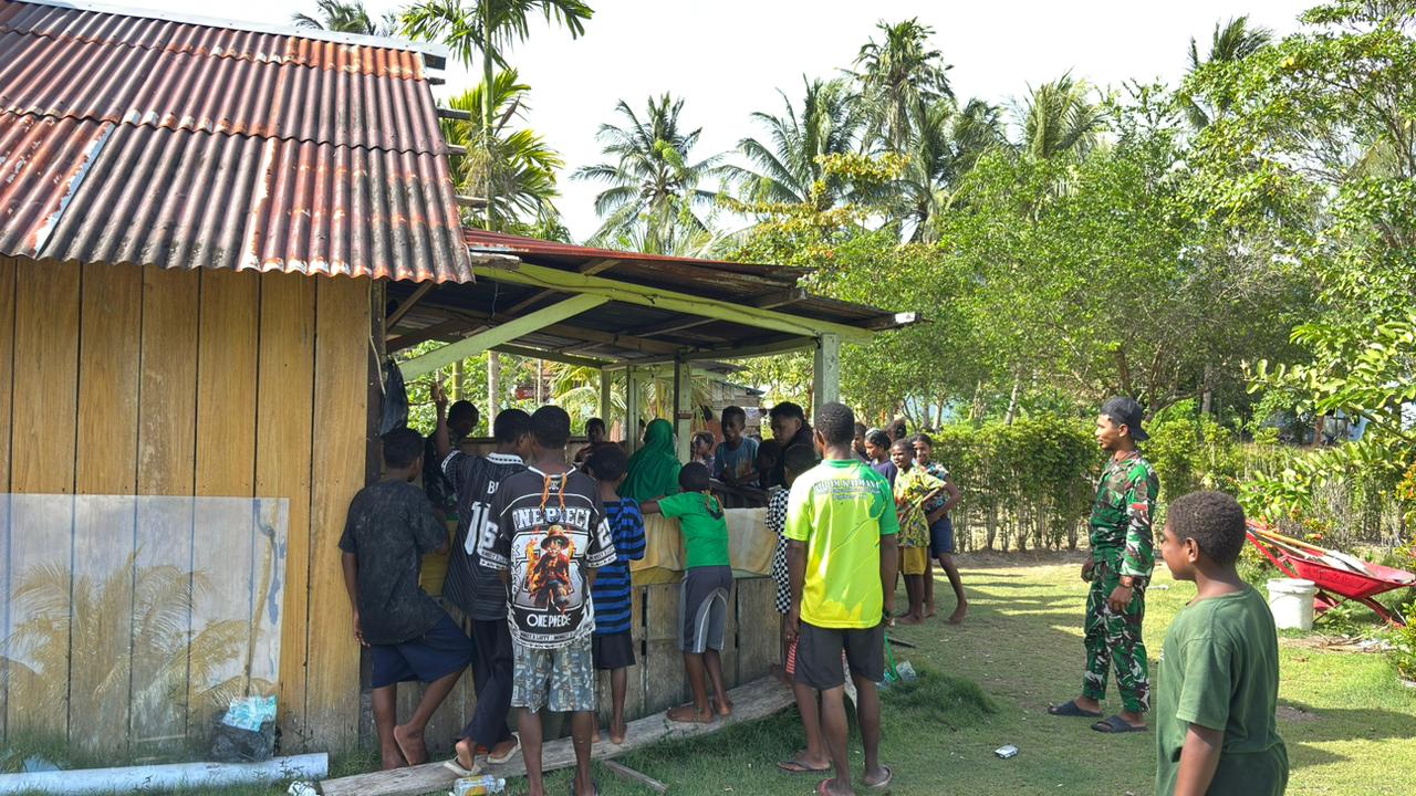 Di tengah kesibukan yang padat, suasana santai dimanfaatkan untuk mempererat hubungan antar anggota TNI dan masyarakat setempat. Para ibu-ibu dari Persit tampak aktif berinteraksi dengan warga dan anggota Satgas, saling berbincang dan berbagi cerita sambil menciptakan suasana keakraban yang erat.
