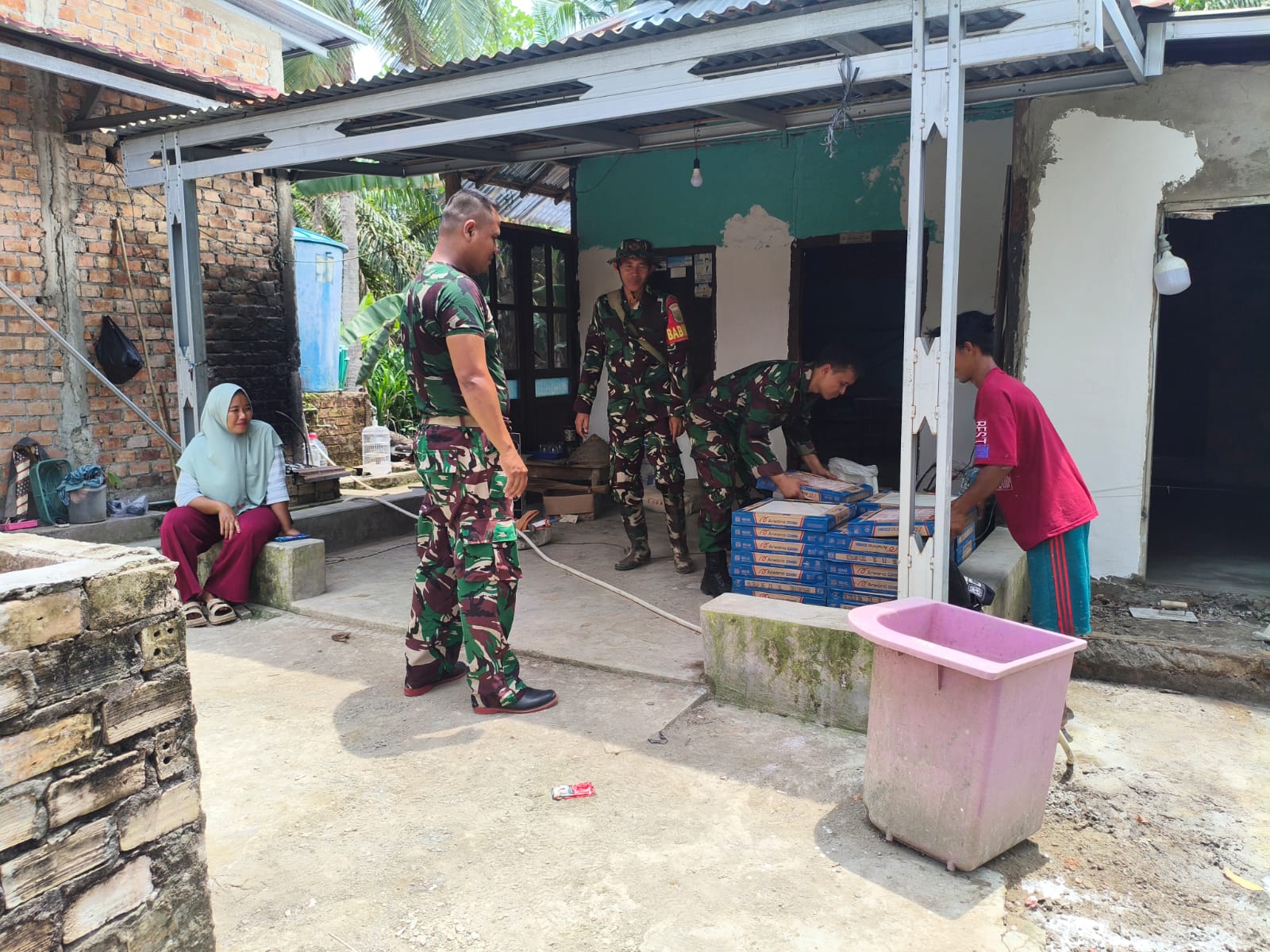 Banyuasin, 5 Maret 2026 – Dalam rangka program TNI Manunggal Membangun Desa (TMMD) ke-127, anggota Satgas Kodim 0430/Banyuasin menunjukkan semangat kebersamaan dengan masyarakat setempat di Desa Wonosari, Kecamatan Pulau Rimau, Kabupaten Banyuasin. Mereka bekerja sama untuk mengangkat material keramik yang akan digunakan dalam pembangunan Rumah Tidak Layak Huni (RTLH) milik Bapak Paiman.