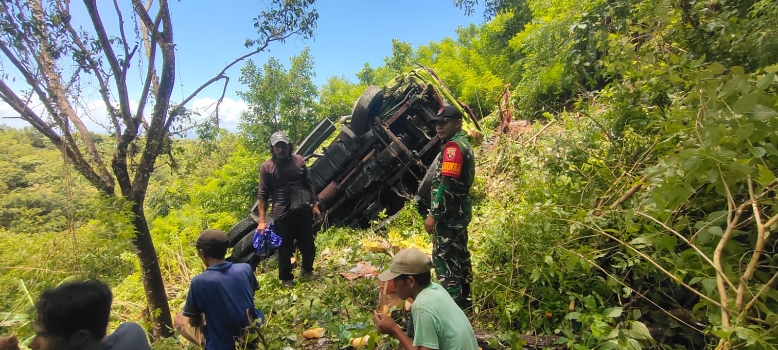 Serda Nursam menyampaikan, “Sopir hanya mengalami luka lecet di lengan kiri, sementara truk mengalami kerusakan berat. Proses evakuasi truk masih menunggu alat berat untuk mengangkatnya dari jurang.”
