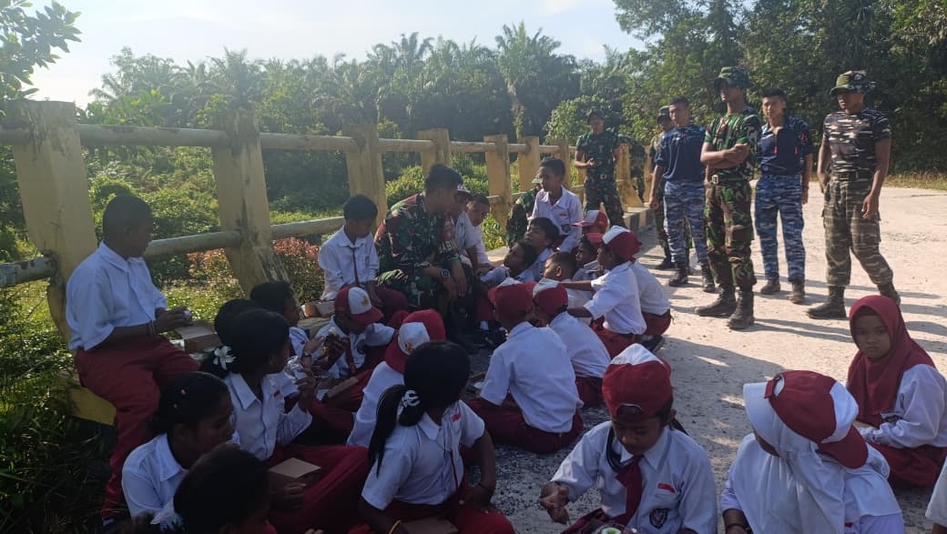Pasi Ter Kodim 1014/Pbn, Kapten Czi M. Yunus, menyampaikan bahwa keceriaan anak-anak menjadi penyemangat tersendiri bagi anggota Satgas dalam menjalankan tugas di lapangan.