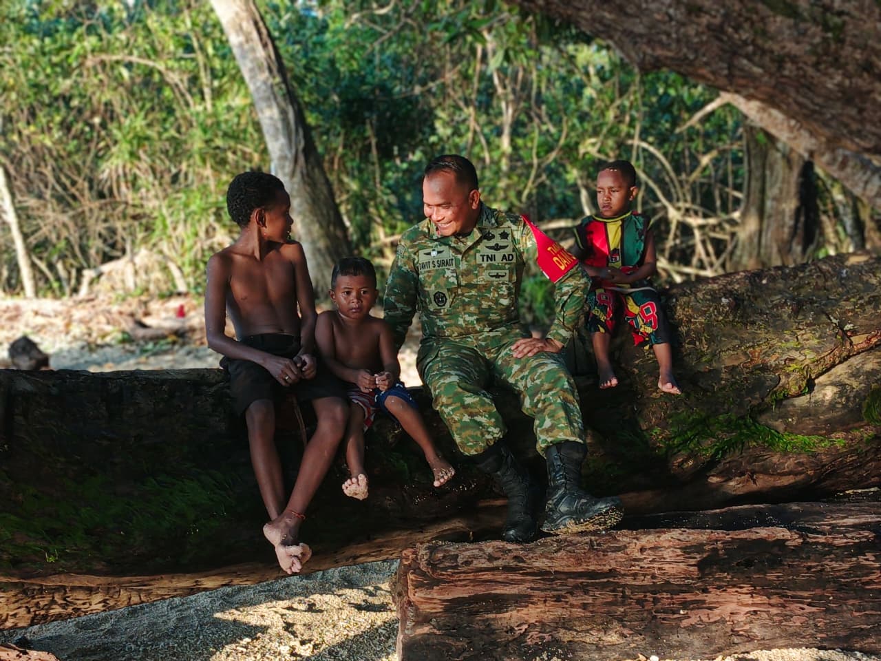 Manokwari – Pelaksanaan TNI Manunggal Membangun Desa (TMMD) Ke-128 di Kampung Tanah Rubuh, Distrik Manokwari Utara, Kabupaten Manokwari, berlangsung dalam suasana akrab dan penuh kehangatan pada Rabu (22/04/2026). Komandan Kodim 1801/Manokwari Letkol Inf Davit Sutrisno Sirait, S.E., menyempatkan diri untuk berinteraksi dengan anak-anak setempat. Ia terlihat duduk di atas batang kayu di pinggir pantai, bercanda dan berbincang santai dengan mereka.