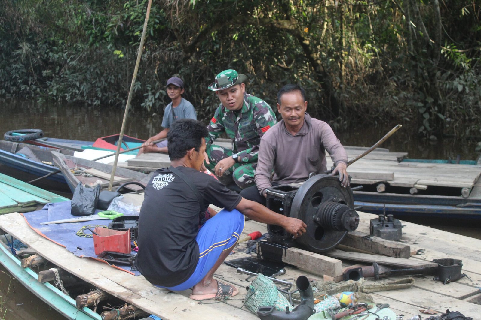 Kedekatan Satgas TMMD Kodim 1012/Buntok dengan Warga Terlihat Saat Bantu Perbaiki Mesin Perahu