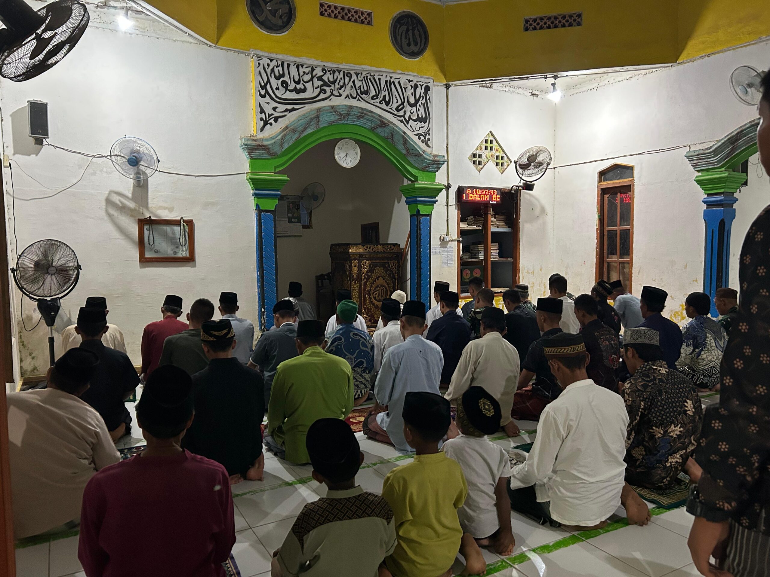Kegiatan Sholat Magrib Berjamaah Anggota Satgas TMMD 127 di Masjid Jami Darussalam