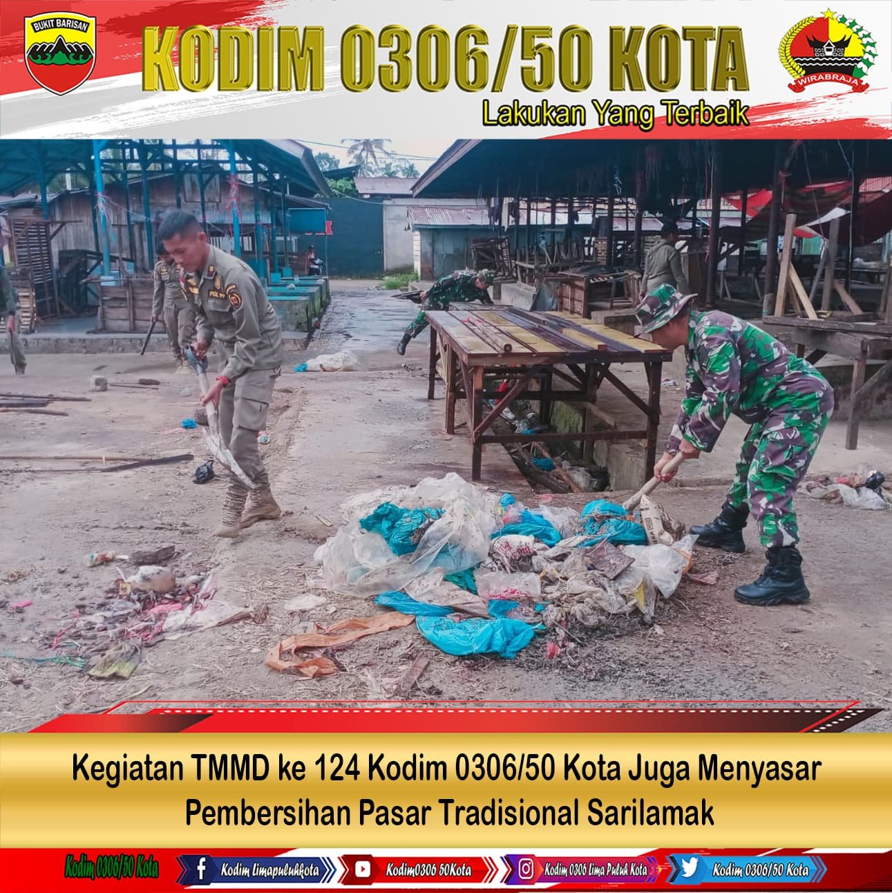 Kegiatan TMMD ke 124 Kodim 0306/50 Kota Juga Menyasar Pembersihan Pasar Tradisional Sarilamak