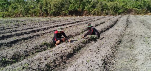 Aceh Barat – Pemandangan kebersamaan tampak jelas di Desa Pasi Aceh, Kecamatan Woyla, saat personel Satgas TMMD Reguler ke-127 Kodim 0105/Abar bersama warga menyusun batu koral sebagai pondasi Talud Penahan Timbunan.