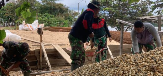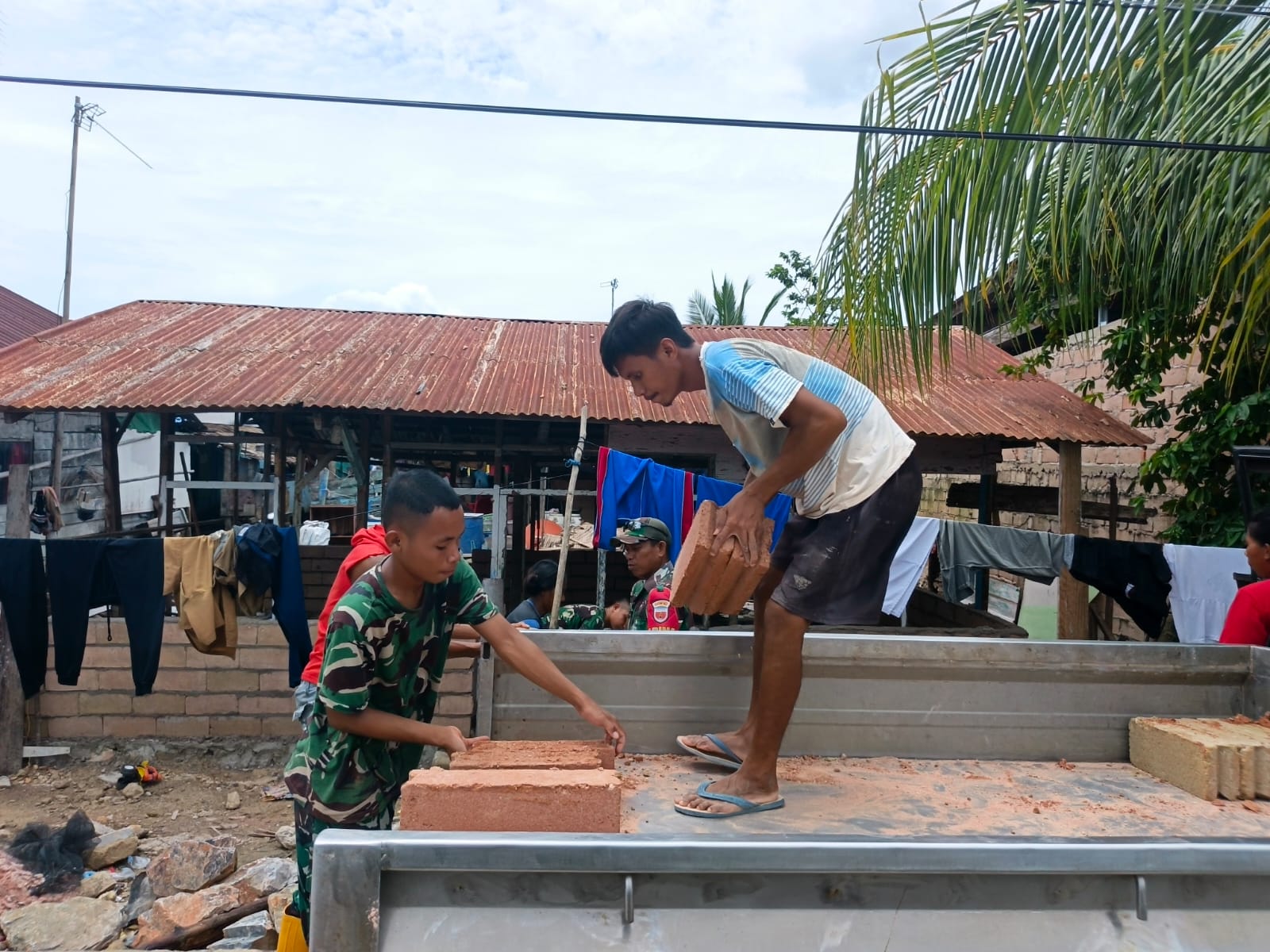 Kendari – Anggota Satgas Tentara Manunggal Membangun Desa (TMMD) ke-127 bersama masyarakat Kota Kendari menunjukkan sinergi yang kuat saat mengangkut material untuk program Rumah Tidak Layak Huni (RTLH) pada hari Senin, 23 Februari. Material bangunan, termasuk batu bata, diangkut dari kendaraan lalu dipindahkan secara manual menuju lokasi proyek pembangunan. Meskipun aktivitas ini memerlukan tenaga ekstra, semangat para prajurit dan warga tidak surut demi mempercepat kemajuan pekerjaan.
