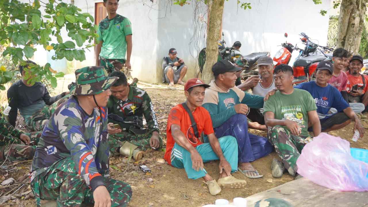 Kekompakan Satgas TMMD dan Warga Desa Tri Buana dalam Momen Istirahat Siang