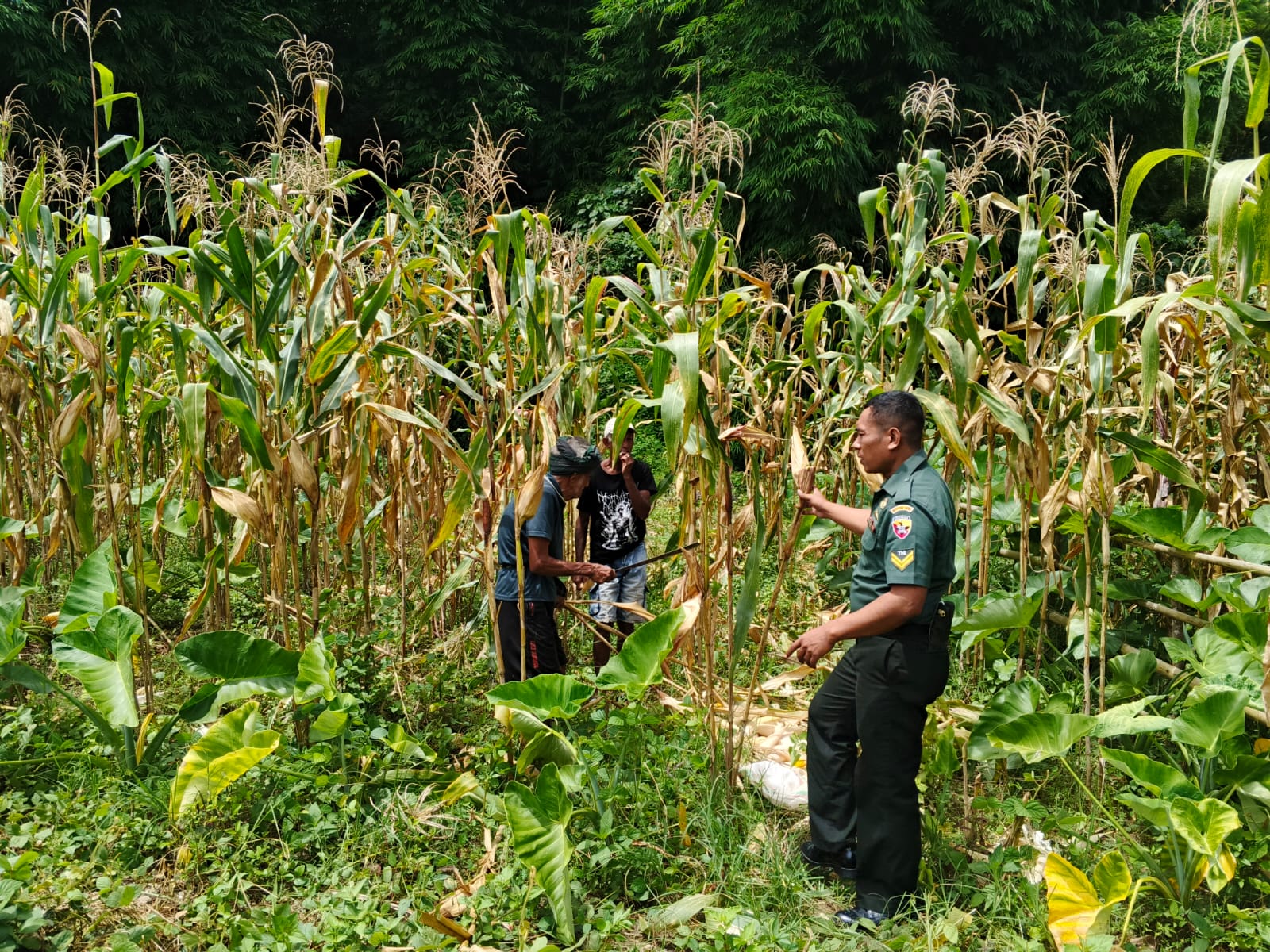 SUMBA TENGAH – Sertu Sukarman, seorang Bintara Pembina Desa (Babinsa) dari Koramil 03/Katikutana Kodim 1613/Sumba Barat, terlibat aktif dalam panen jagung yang berlangsung di Desa Maradesa, Kecamatan Umbu Ratu Nggay Tengah, pada Kamis (08/01/2026). Kegiatan ini bukan sekadar upaya panen, tetapi juga menunjukkan kepedulian TNI terhadap ketahanan pangan di wilayah tersebut.