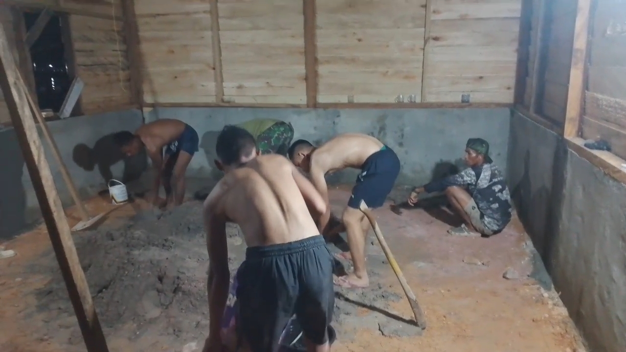 Dengan penuh semangat, para prajurit TNI dan warga saling bahu-membahu menyelesaikan berbagai tahap pembangunan, mulai dari pemasangan rangka kayu pada bagian atas hingga proses perapian lantai. Kerja sama ini mencerminkan komitmen mereka untuk memastikan rumah yang sedang dibangun dapat segera diselesaikan dan dihuni oleh pemiliknya.