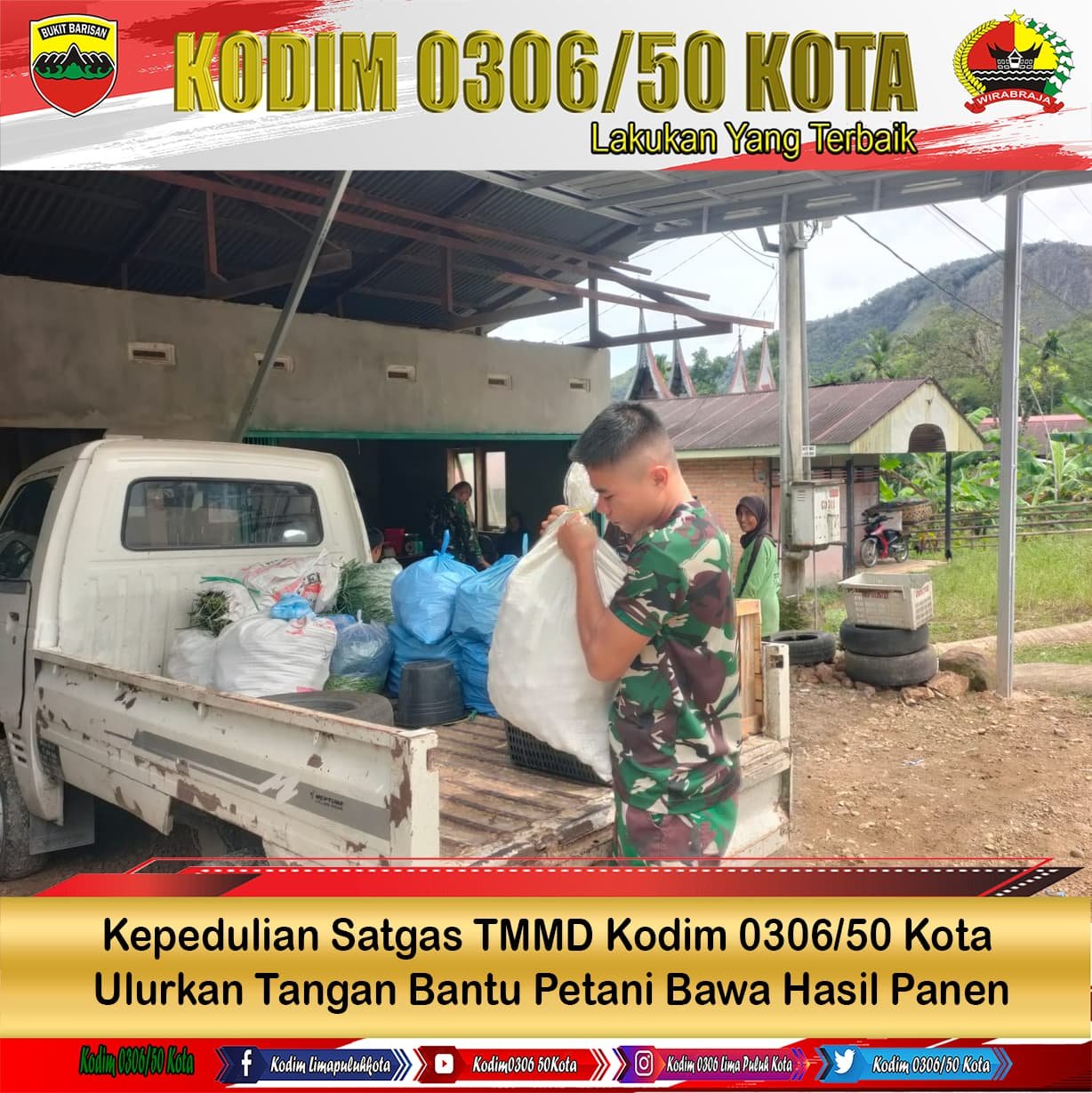 Kepedulian Satgas TMMD Kodim 0306/50 Kota Ulurkan Tangan Bantu Petani Bawa Hasil Panen