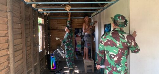 Di bawah pengawasan ketat, personel Satgas bersama warga menyelesaikan pemasangan dengan penuh tanggung jawab.