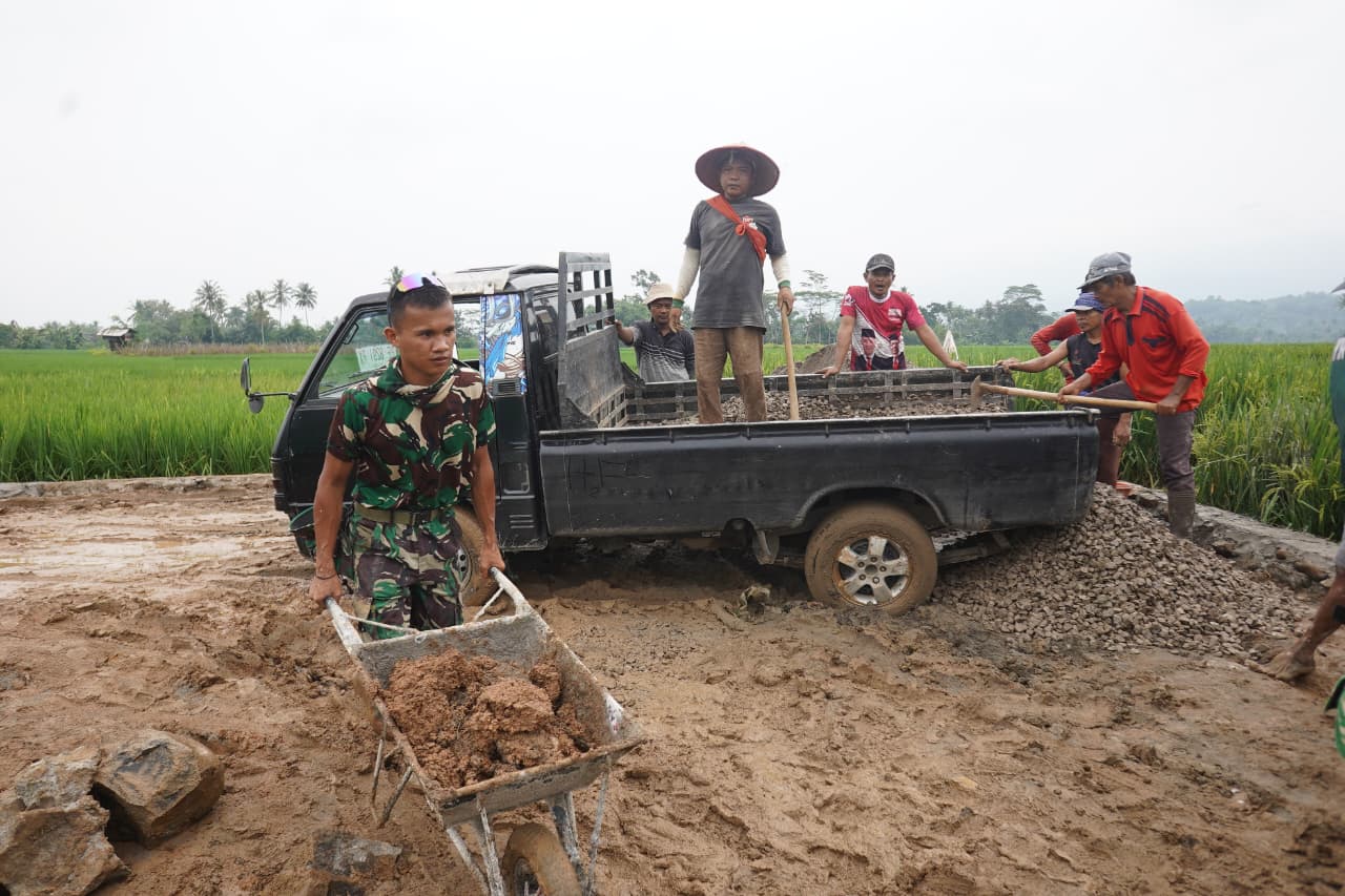 Kerja Sama Antara TNI dan Warga dalam TMMD ke-127 Membangun Jalan Rabat Beton