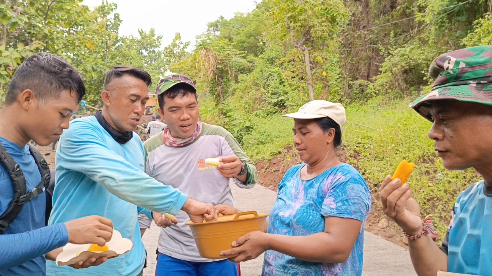 Meski hidup dalam keterbatasan sebagai buruh serabutan, Ibu Luh Eka tak ragu menyumbangkan hasil panen kebun kecilnya—ubi dan labu rebus—kepada para prajurit TNI yang tengah membangun jalan desa. Tindakan kecil yang lahir dari ketulusan ini menjadi bentuk nyata dukungan warga terhadap upaya pembangunan desa mereka.