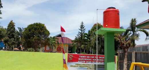Mukomuko – Bersama masyarakat melakukan aksi bersih pantai. Kegiatan ini merupakan upaya personil Kodim 0428/Mukomuko dalam membantu meringankan beban warga di wilayah binaan serta kepedulian terhadap kebersihan lingkungan.