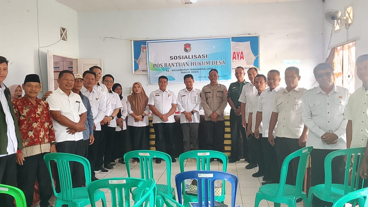 Kodim 0428/MukoMuko Dukung, Sosialisasi Pembentukan Pos Bantuan Hukum (Posbankum), yang dilaksanakan di Aula Kantor Desa Kec. Teramang Jaya Kab. MukoMuko
