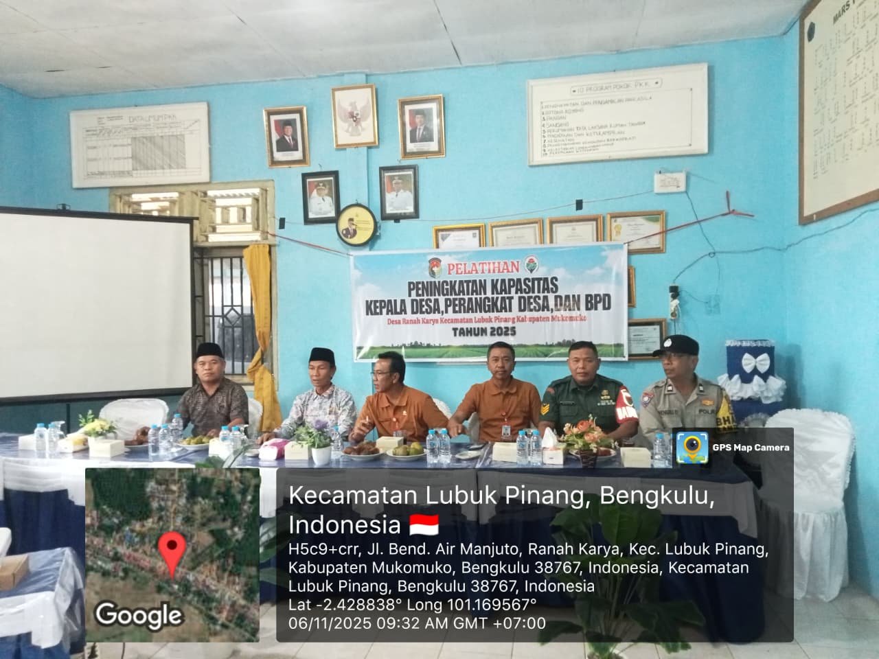 MukoMuko – Menghadiri kegiatan Peningkatan Kapasitas Aparatur Pemerintahan Desa dalam Bimtek Pengelolaan Aset Desa bertempat di kantor Desa Ranah Karya Kec. Lubuk Pinang Kecamatan Kabupaten MukoMuko. Kamis (06/11/2025).