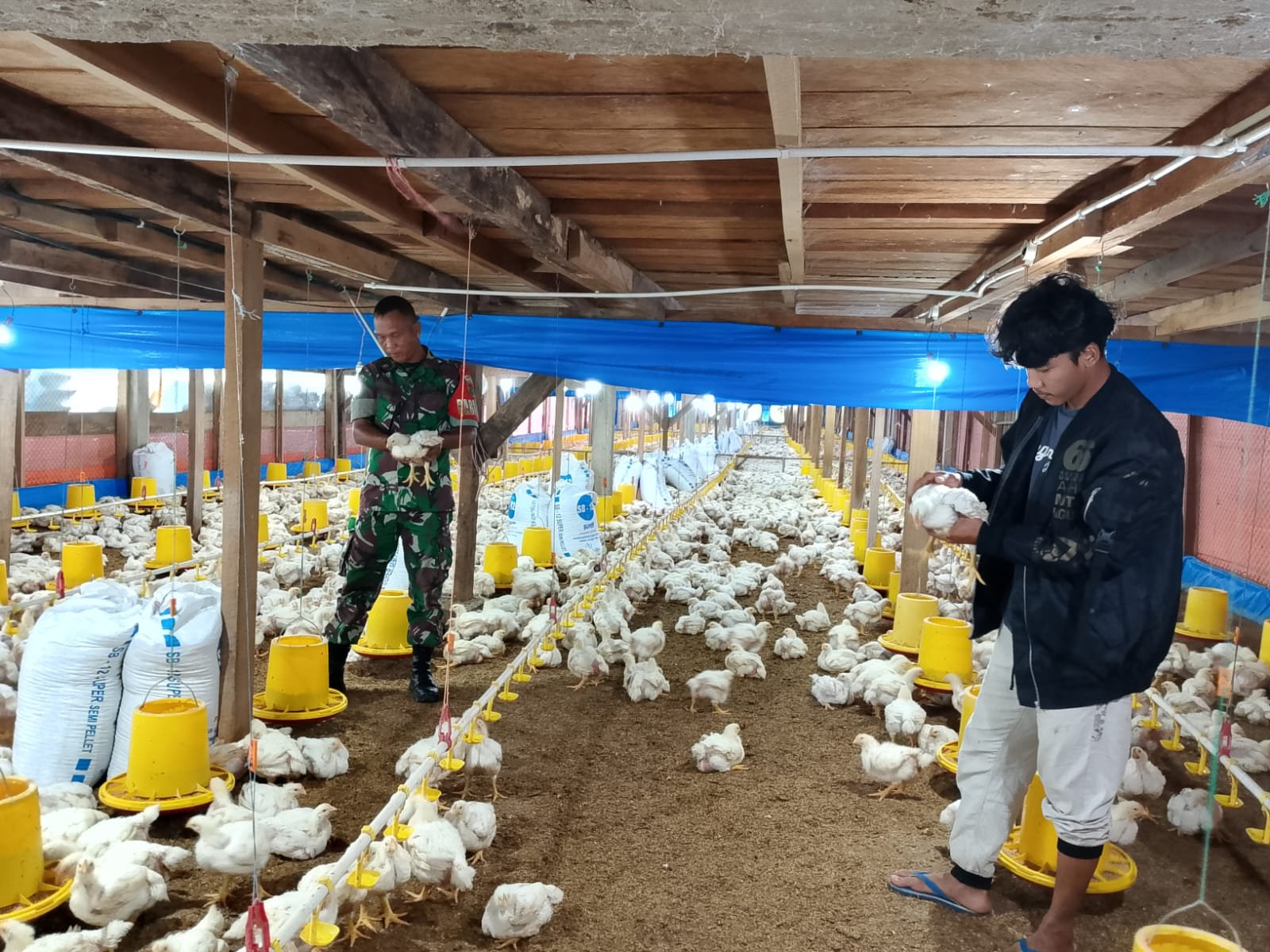 Kodim 0428/Mukomuko, Melaksanakan Pemantauan Ketahanan Pangan Ternak Ayam Pedaging, di Wilayah Desa Binaannya