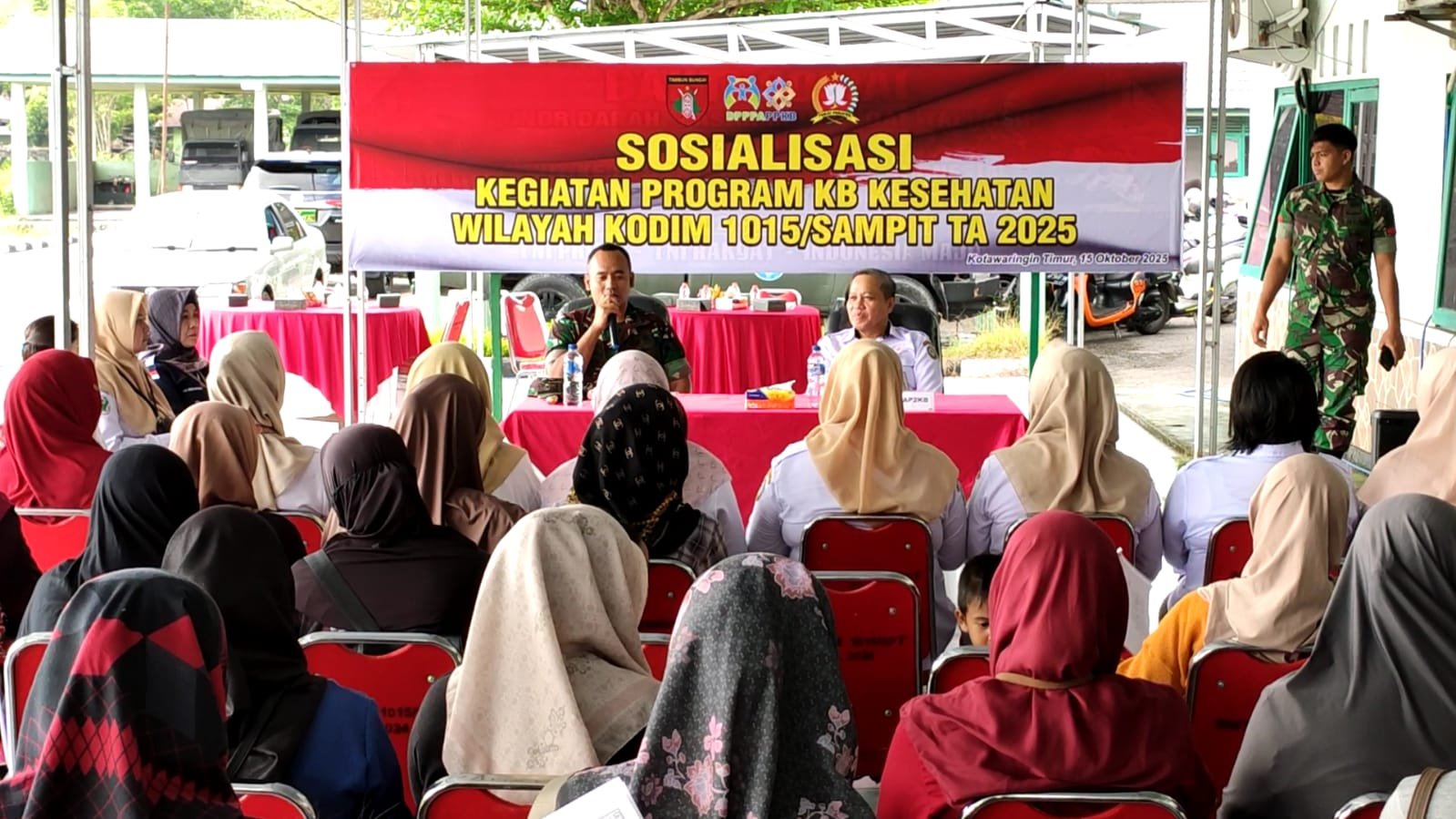 Kotawaringin Timur – Kodim 1015/Sampit bekerja sama dengan DPPPAPPKB Kabupaten Kotim dan Pemerintah Kabupaten Kotim melaksanakan Kegiatan KB Kesehatan di wilayah Kodim 1015/Spt Semester II TA. 2025 yang bertempat di Aula Kompi Senapan A Yonif 631/Antang, Senin(20/10/2025)