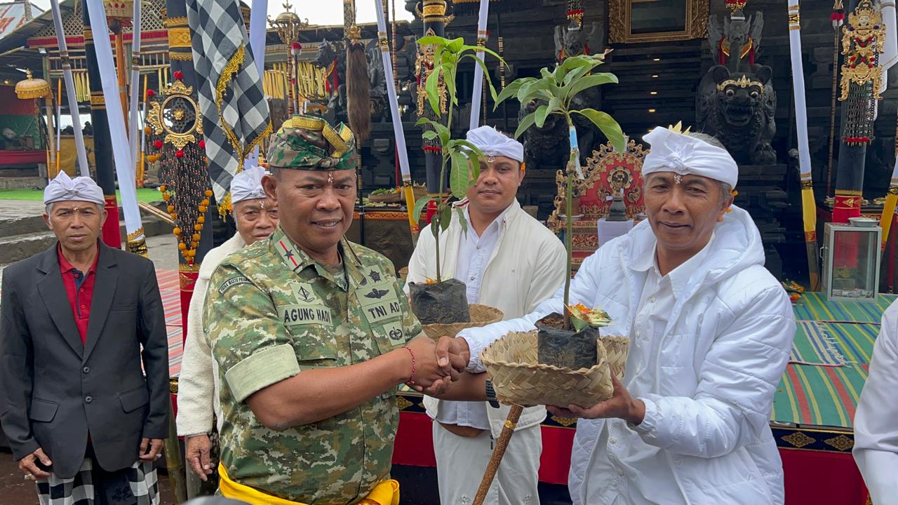 Rangkaian acara dimulai pukul 08.30 WITA dengan persembahyangan bersama sebagai bentuk ungkapan bhakti dan rasa syukur kepada Ida Sang Hyang Widhi Wasa. Dilanjutkan dengan penyerahan pohon secara simbolis oleh Danrem 163/Wira Satya, menandakan kepedulian terhadap pelestarian lingkungan dan kesucian kawasan pura.