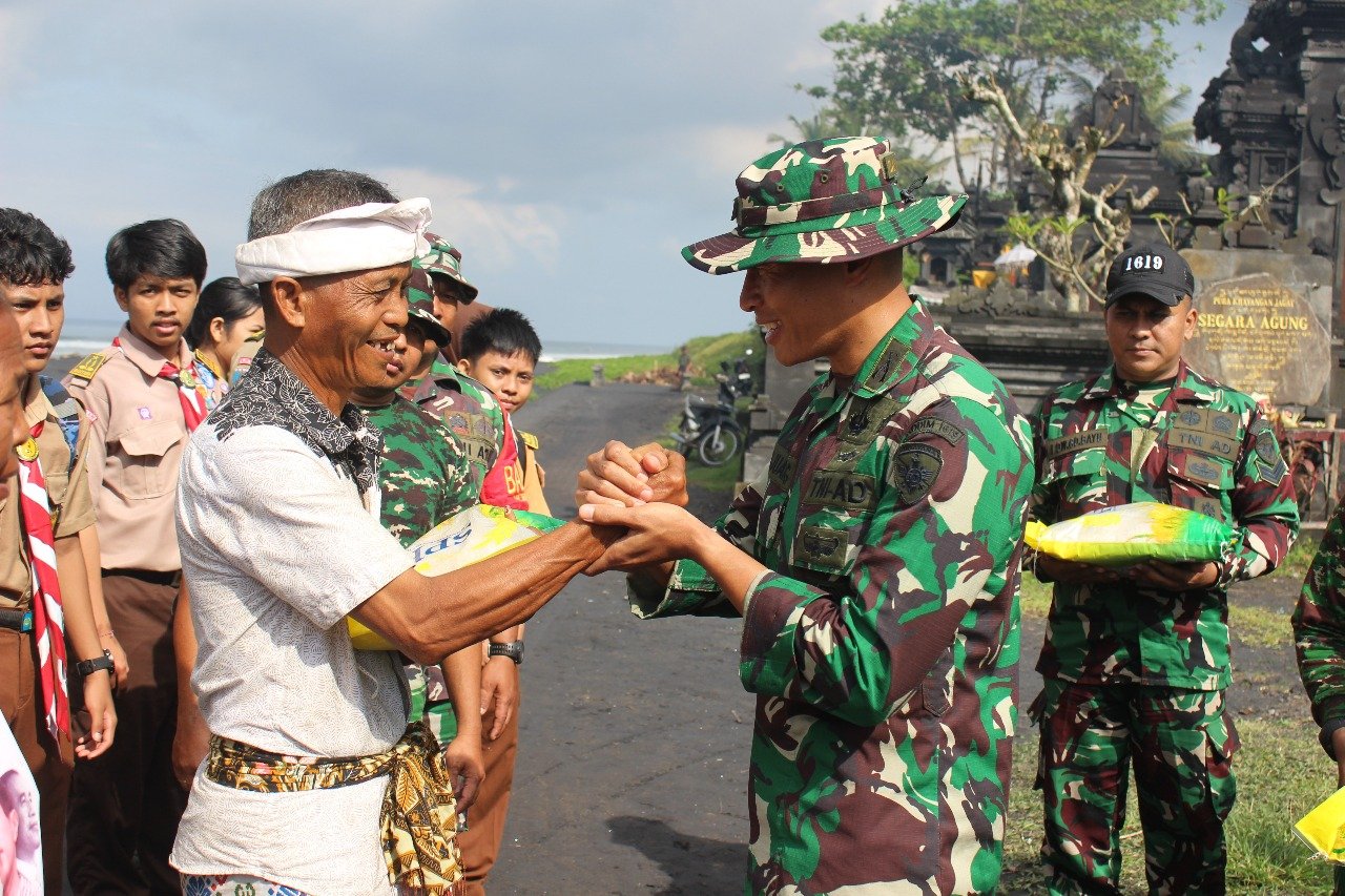 Kegiatan tersebut dipimpin langsung oleh Dandim 1619/Tabanan Letkol Inf Trijuang Danarjati, S.A.P., M.I.P., didampingi unsur Forkopimcam Kerambitan serta perangkat desa setempat. Suasana penuh kebersamaan tampak jelas ketika masyarakat antusias menerima bantuan yang disalurkan secara langsung oleh para prajurit TNI.