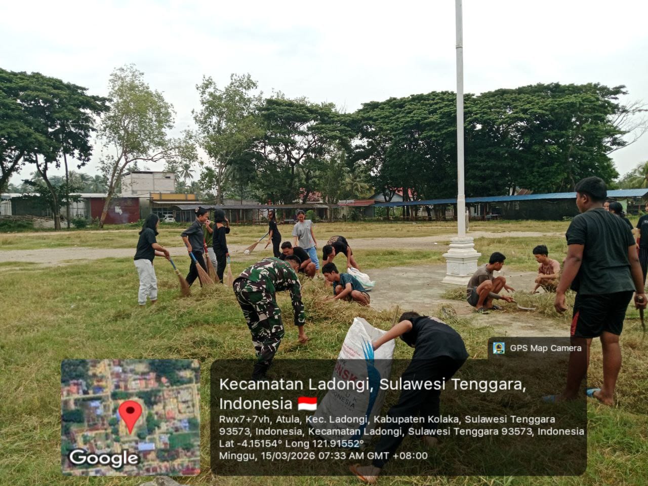 Kolaka Timur – Dalam upaya menjaga kebersihan dan memperkuat hubungan dengan warga, Serda Mansur dari Babinsa Koramil 1412-01/Tirawuta melaksanakan kegiatan karya bakti bersama para pemuda di Kelurahan Atula. Kegiatan ini berlangsung di Lapangan Kelurahan Atula, Kecamatan Ladongi, Kabupaten Kolaka Timur.