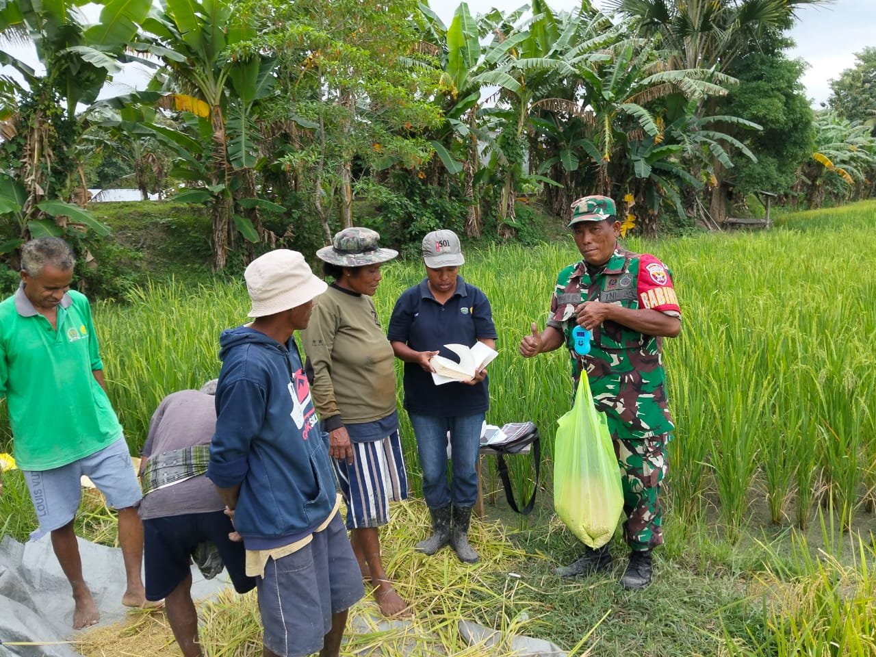 Kolaborasi Babinsa dan PPL Lakukan Ubinan Padi Petani