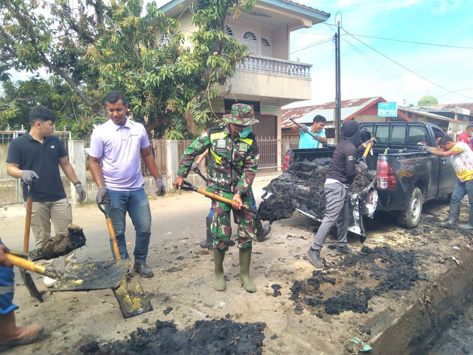 Kolaborasi Babinsa dan Warga Bersihkan Lingkungan di Lhokseumawe