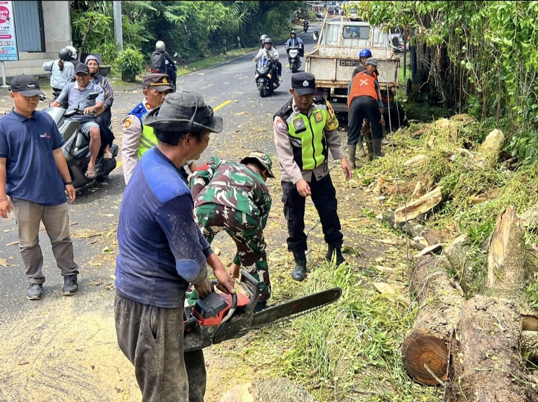 Tabanan — Dalam upaya mencegah potensi bencana, aparat kewilayahan berkolaborasi dengan masyarakat setempat. Pada Kamis (4/2/2026), Babinsa Desa Luwus, Koramil 1619-07/Baturiti, Kopda I Putu Ade Wiradarma, berpartisipasi dalam kegiatan penebangan pohon yang berpotensi roboh dan dapat membahayakan keselamatan warga di Desa Luwus, Kecamatan Baturiti.