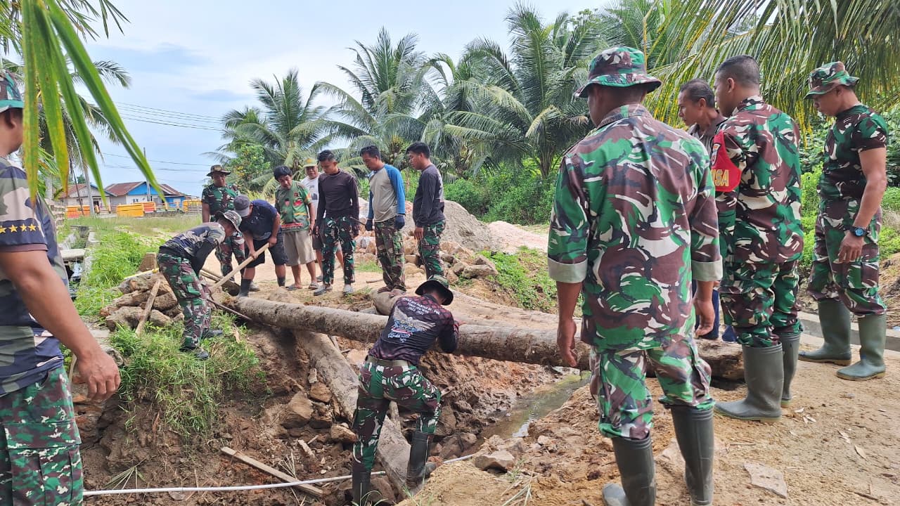 Meski terik matahari dan debu mengiringi, tim gabungan ini tetap semangat memindahkan batang kelapa dan material lainnya untuk mempersiapkan fondasi jembatan yang lebih kuat. Kehadiran Satgas TMMD di Sambuli bukan hanya sekadar bantuan teknis, melainkan harapan baru bagi warga untuk kelancaran aktivitas sehari-hari mereka.