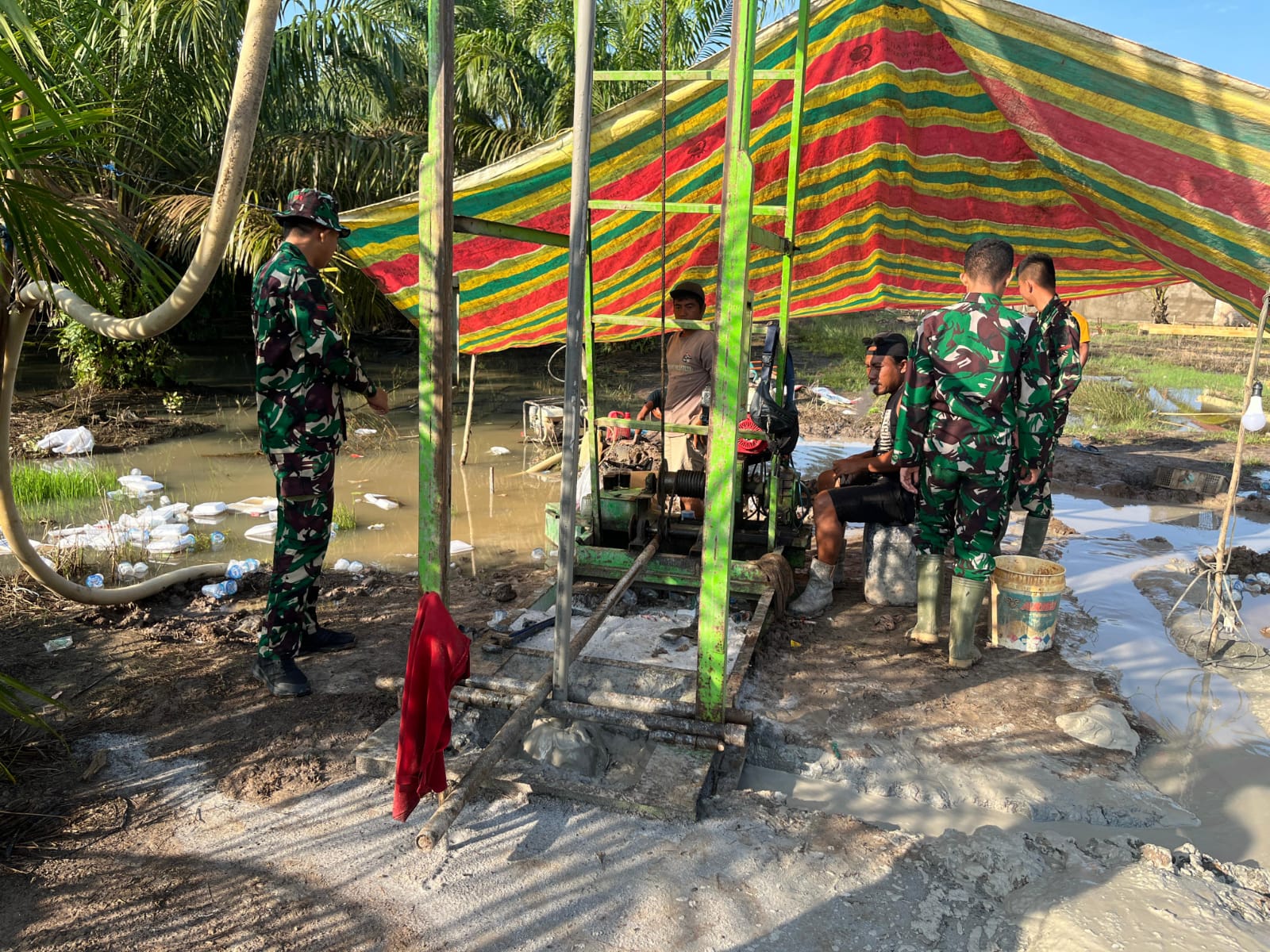 Banyuasin – Dalam upaya mencapai target penyelesaian program TNI Manunggal Membangun Desa (TMMD) ke-127, anggota Satgas TMMD Kodim 0430/Banyuasin bersama warga Desa Wonosari aktif bekerja sama dalam pembangunan sumur bor yang ketiga. Lokasi pembangunan terletak di belakang Kantor Desa Wonosari.