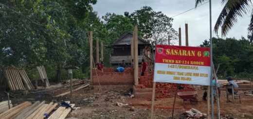Kolaborasi Satgas TMMD 127 Kodim 0430/BA dan Warga Dalam Pembangunan RTLH Ibu Suwarti