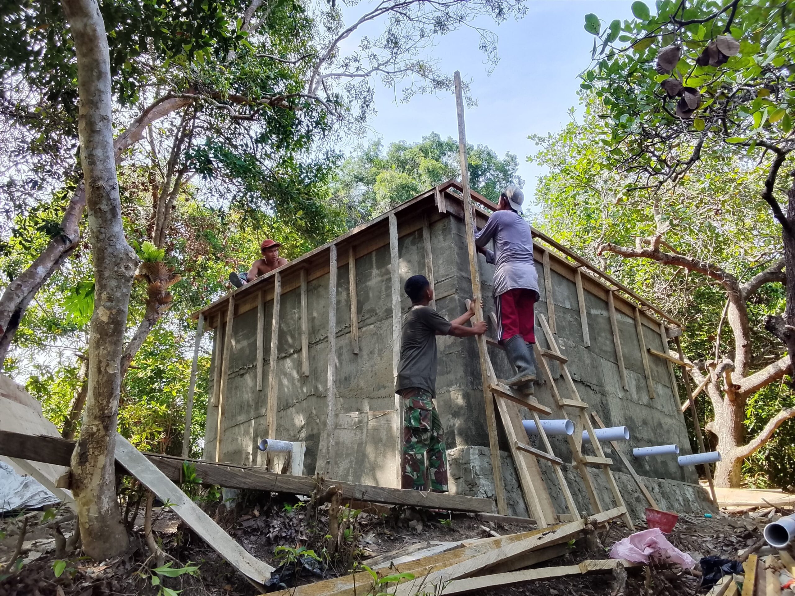 Kendari – Pembangunan fasilitas penampungan air bersih di Kelurahan Sambuli terus berlangsung secara intensif oleh personel Satgas TMMD ke-127 dari Kodim 1417/Kendari bersama masyarakat setempat pada hari Sabtu (7/3). Meskipun menghadapi tantangan dari kondisi medan yang sulit, para prajurit menunjukkan komitmen tinggi untuk memastikan bahwa struktur bak air yang dibangun memiliki daya tahan yang baik dan berkualitas.