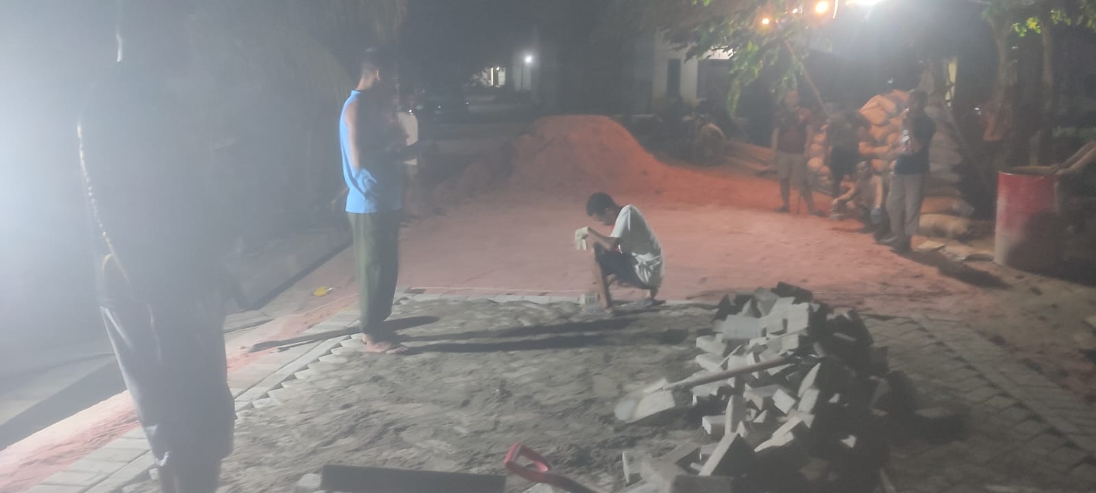 Dengan bantuan penerangan seadanya, para prajurit dan warga bekerja sama menyusun material paving blok secara berurutan guna memastikan jalan tersebut dapat segera diakses oleh masyarakat. Upaya pengerjaan hingga malam hari ini merupakan bagian dari strategi untuk memenuhi target penyelesaian sasaran fisik program TMMD.