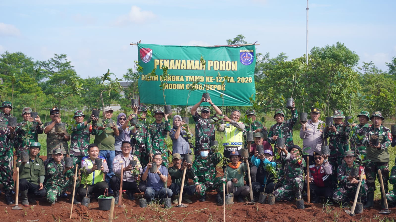 Kolaborasi TNI, Polri, dan Masyarakat Depok dalam Aksi Penanaman Pohon TMMD ke-127 di UIII