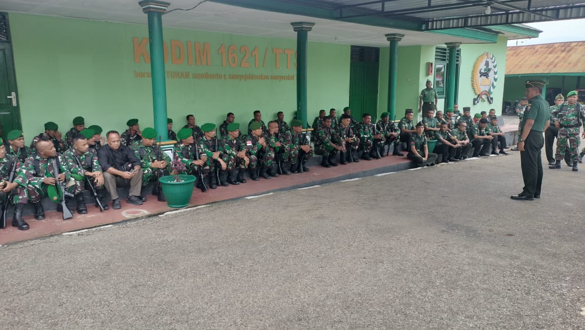 Kodim 1621/TTS mengadakan kegiatan Jam Komandan pada Senin, 26 Januari 2026, yang dipimpin oleh Kasdim 1621/TTS, Kapten Inf Wagino. Acara ini dihadiri oleh seluruh prajurit dan Pegawai Negeri Sipil (PNS) TNI di lingkungan Kodim 1621/TTS, bertujuan untuk meneguhkan nilai-nilai yang menjadi ciri khas Tentara Nasional Indonesia (TNI).