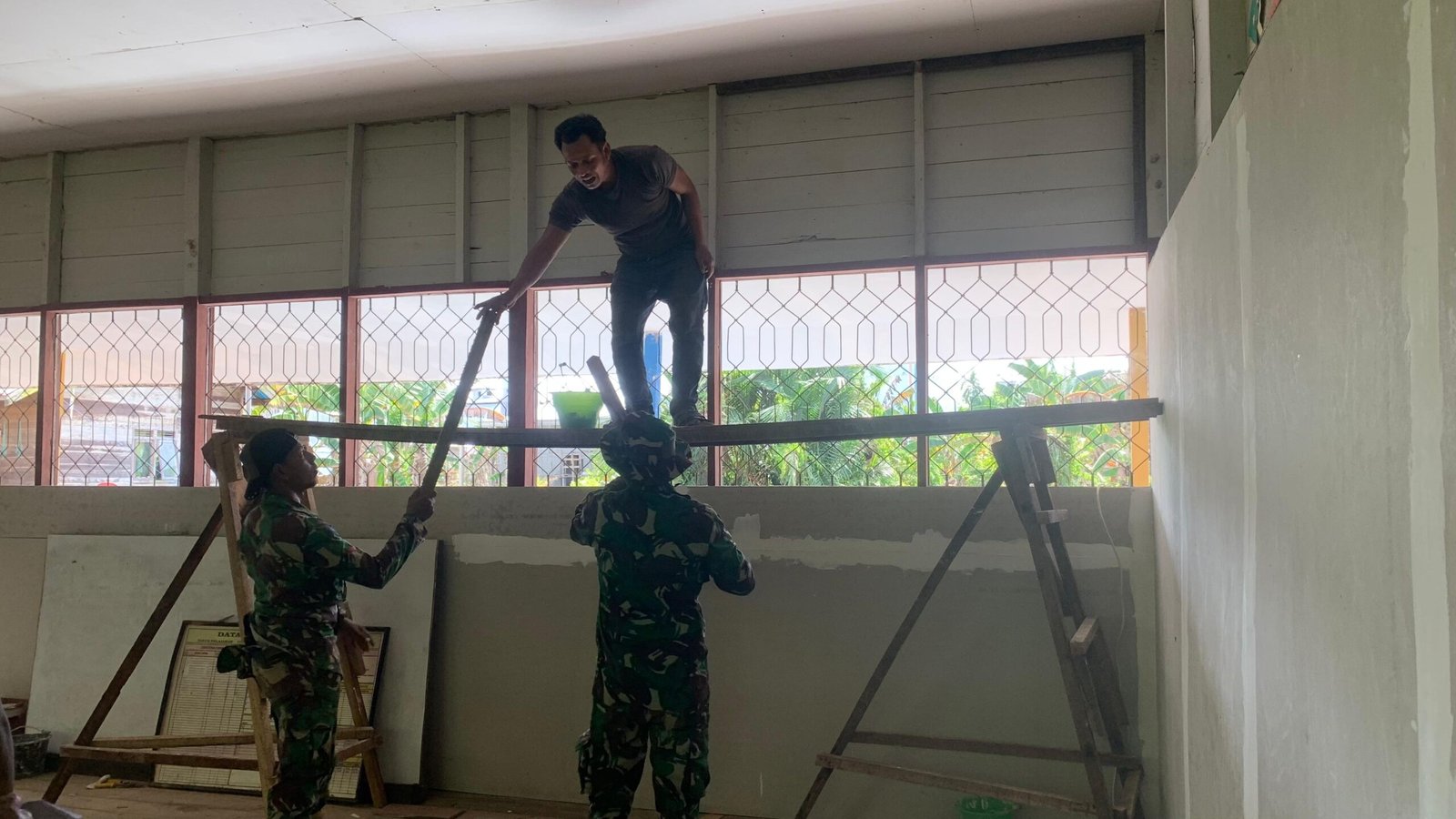 Satgas TMMD bersama warga terlihat bahu-membahu melakukan perehaban gedung sekolah, mulai dari perbaikan atap, pengecatan dinding, hingga penataan ruang kelas. Semua dilakukan dengan semangat dan sinergi tinggi demi menciptakan lingkungan belajar yang nyaman dan layak bagi para siswa maupun guru.