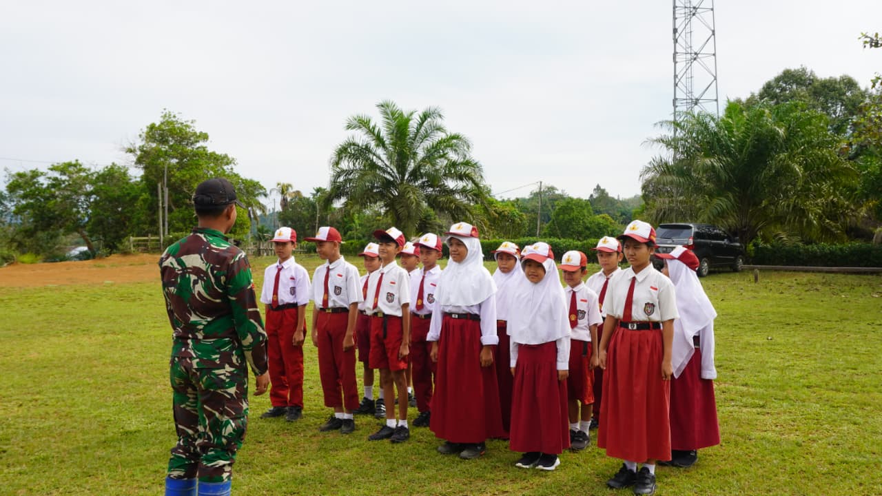 Latihan PBB Membangun Karakter Siswa di SD Desa Tri Buana oleh Satgas TMMD ke-127