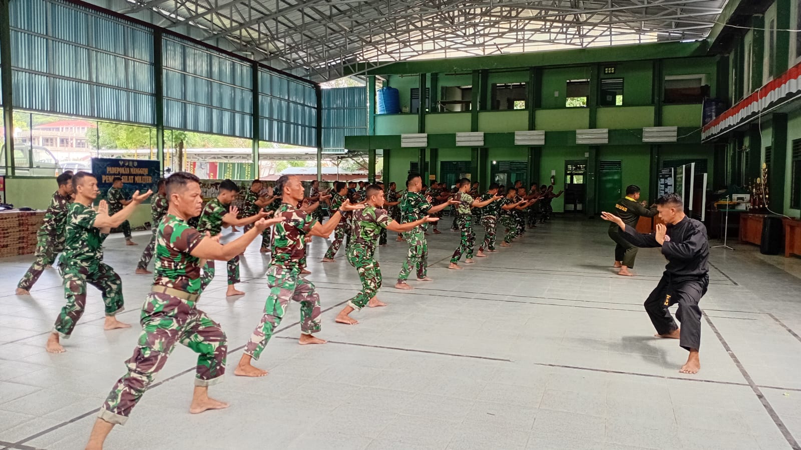 Manado – Dalam rangka meningkatkan profesionalisme dan daya tahan fisik prajurit, personel Kodim 1309/Manado melaksanakan latihan Pencak Silat Militer (PSM) yang berlangsung di Aula Makodim 1309/Manado. Kegiatan ini ditujukan untuk pembinaan kemampuan bela diri prajurit yang esensial dalam mendukung tugas pokok TNI di lapangan.