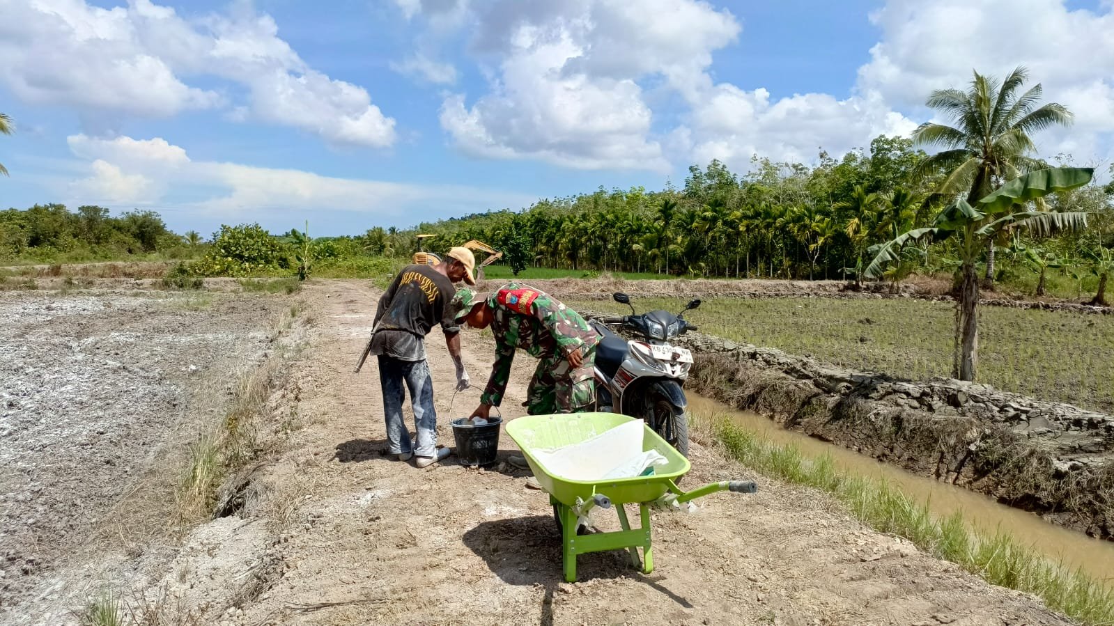 Mempawah — Suasana akrab dan penuh kebersamaan mewarnai kegiatan TMMD Reguler ke-124 di Desa Purun Kecil, Kecamatan Sungai Pinyuh, Kabupaten Mempawah. Di lahan pertanian yang menjadi bagian dari program ketahanan pangan TMMD, personel TNI dan warga desa terlihat bekerja berdampingan, bukan sekadar menyebar pupuk, tapi juga menanam semangat gotong royong.