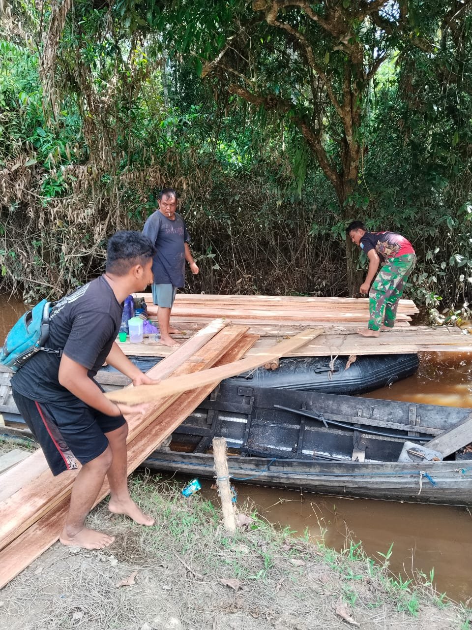 Prajurit TNI bersama warga memindahkan material seperti pasir, batu, dan papan secara estafet dari titik penumpukan menuju lokasi pembangunan jembatan. Akses yang tidak bisa dilalui kendaraan membuat proses lansir material dilakukan dengan cara manual, menggunakan karung, pikul, dan gerobak sederhana.