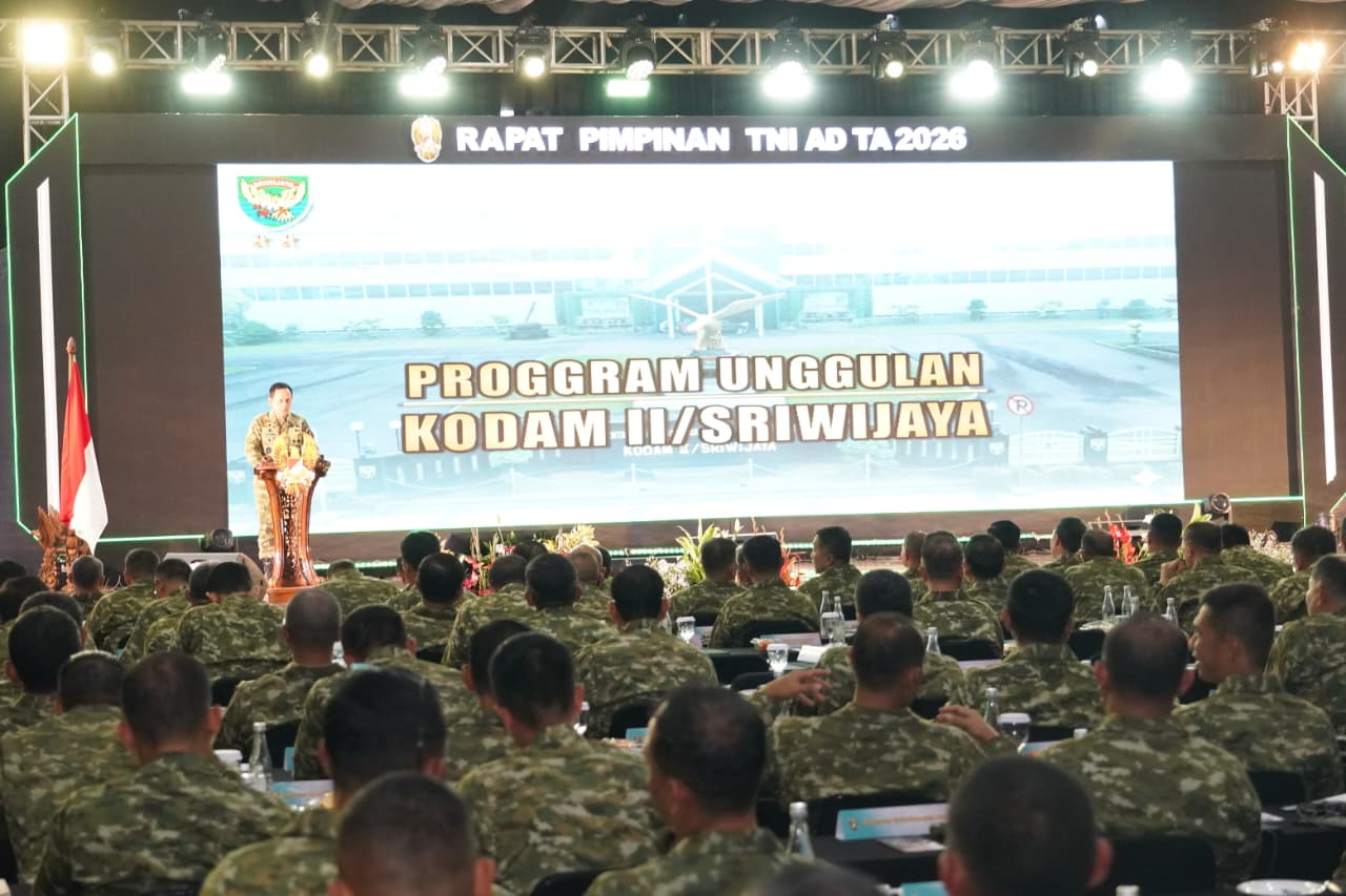 Pangdam II/Sriwijaya, Mayjen TNI Ujang Darwis, M.D.A., berpartisipasi dalam Rapat Pimpinan (Rapim) TNI AD Tahun Anggaran 2026 yang berlangsung di Balai Kartini, Jakarta Selatan, pada Rabu, 11 Februari 2026. Forum tahunan ini menjadi momen penting untuk mengevaluasi capaian kinerja serta menyelaraskan kebijakan pimpinan TNI AD dalam menghadapi tantangan mendatang.