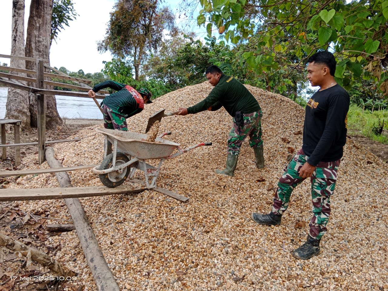 Medan Ekstrem, Satgas TMMD Kodim 1012/Buntok Angkut Pasir dengan Gerobak Dorong