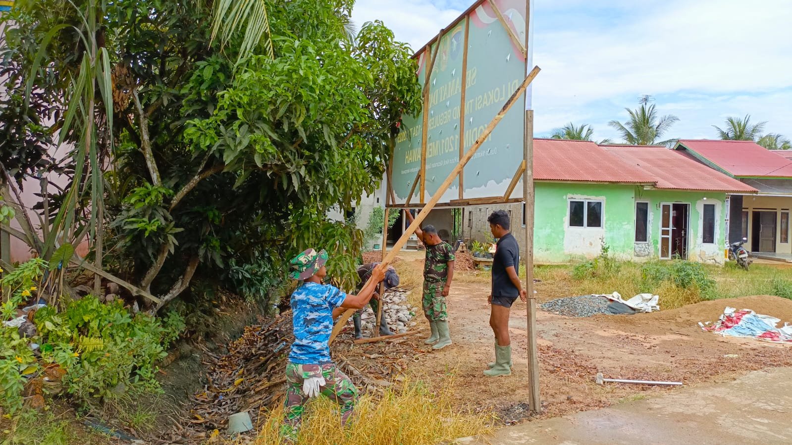 Menjelang Penutupan TMMD Reguler ke-124, Satgas Kodim 1201/Mempawah Pasang Banner di Lokasi Kegiatan