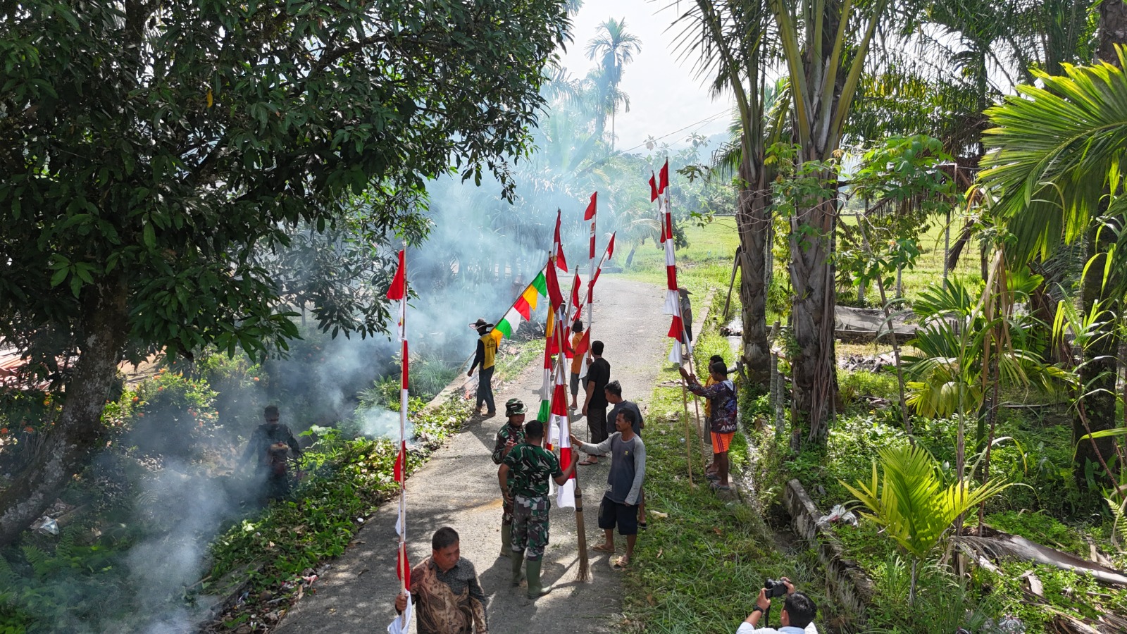 Umbul-umbul yang kini berdiri tegak di sepanjang jalan desa bukan hanya hiasan semata. Ia menjadi saksi perjalanan kebersamaan antara TNI dan masyarakat yang selama beberapa minggu terakhir saling bahu-membahu membangun desa.(0116).