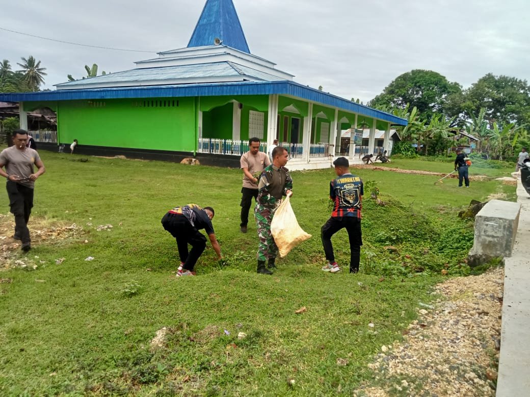 Menyambut HUT TNI Ke-80 Koramil 1512-03/Gebe bersama pihak kepolisian, Aparatur Desa Melaksanakan Pembersihan Sarana Tempat Ibadah
