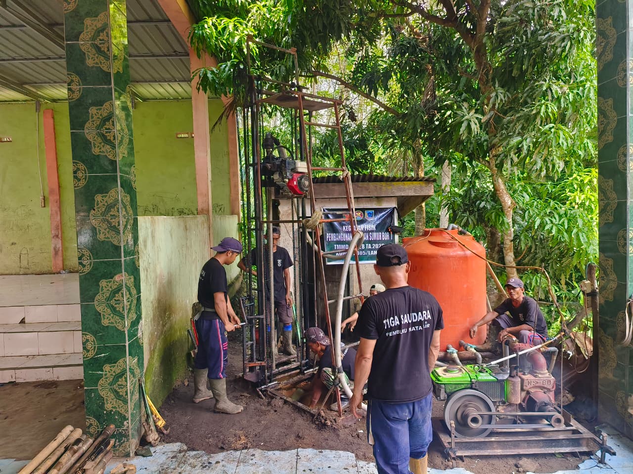 Proses pengeboran dilakukan secara bertahap dengan menggunakan peralatan khusus untuk mencapai sumber air yang layak digunakan. Anggota Satgas TMMD terlihat bekerja tanpa henti, memastikan proses berjalan lancar dan sesuai dengan standar teknis.